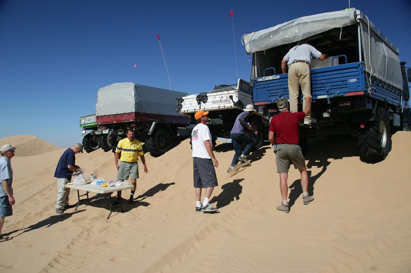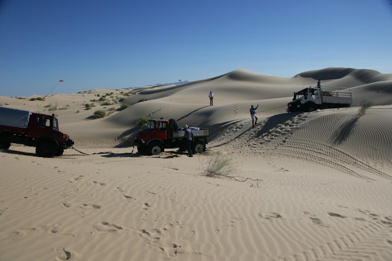 To insure the success of a major expedition in a foreign country, it is absolutely essential that the proper team of vehicles and operators was assembled. Of key importance was vehicle reliability. The size of the Altar dunes basically precludes the ability to tow a truck as dead weight. While theoretically possible, the time required to complete the winching make recovery a practical impossibility. Therefore, special attention was given to mechanical preparations prior to the trip.