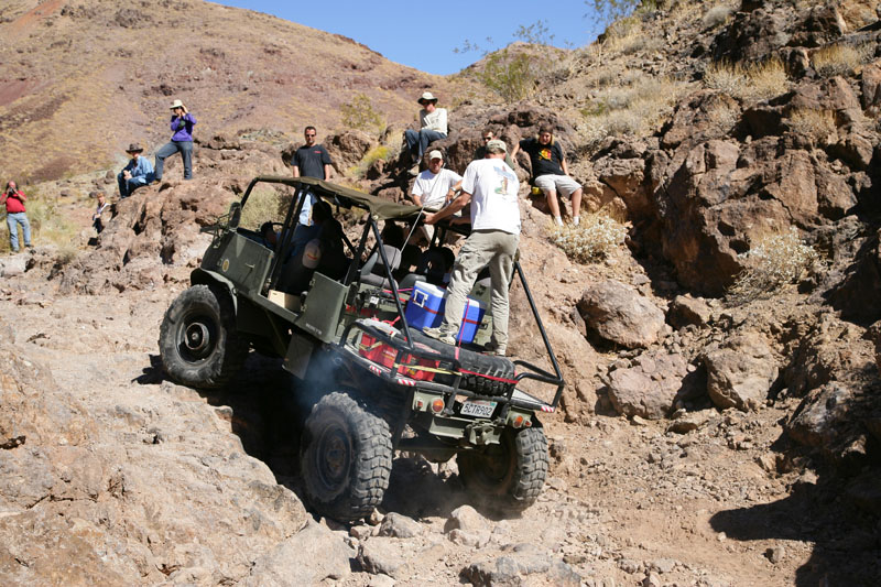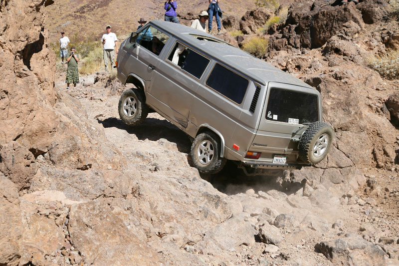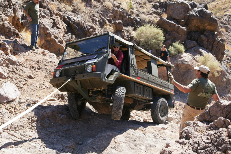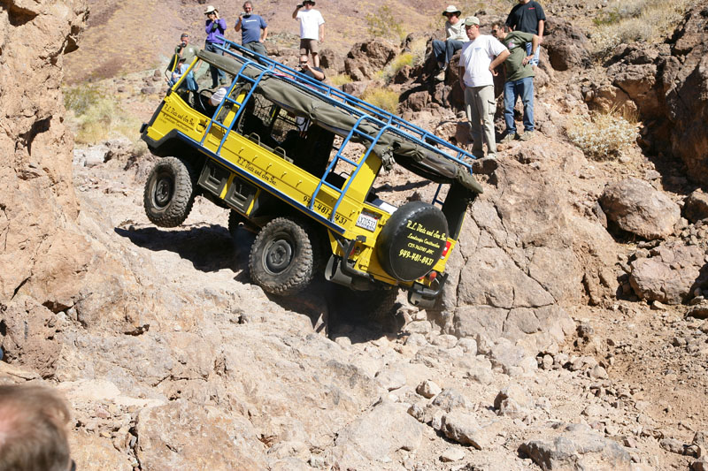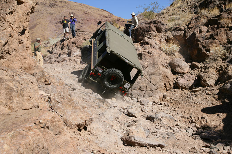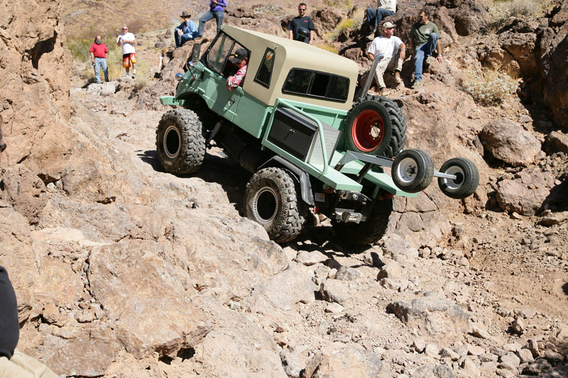 With the steep tilt angle, she tagged by rear tool box on the rock. Due to the tight quarters, this was pretty much unavoidable. All told, she did a great job negotiating this obstacle..