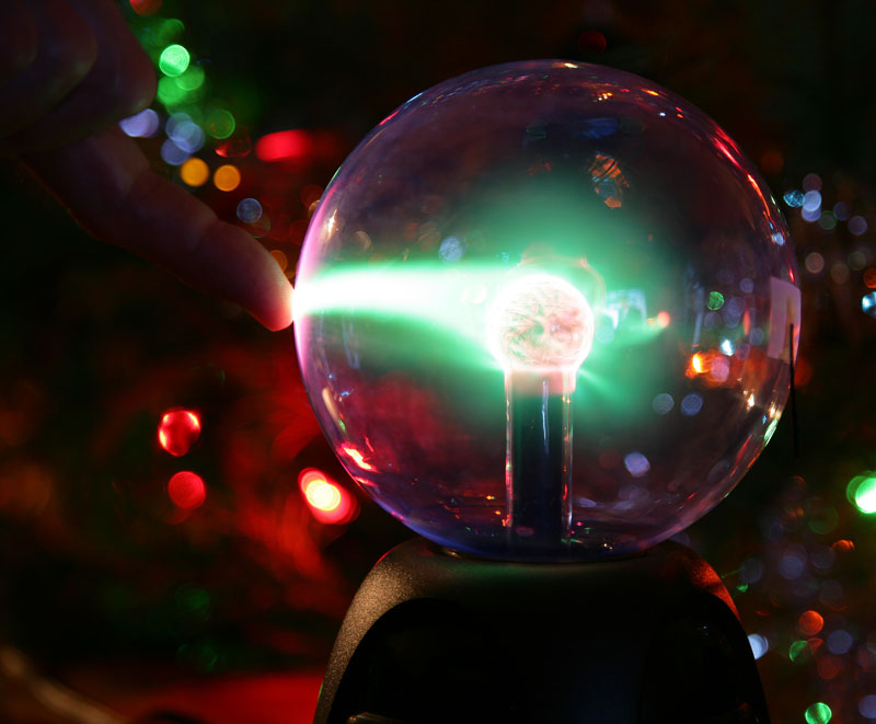 Kathleen had bought a plasma ball. It produced interesting plasma trails when you brought an object close to the sphere.
