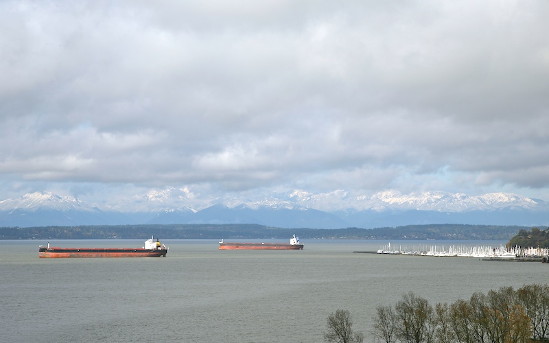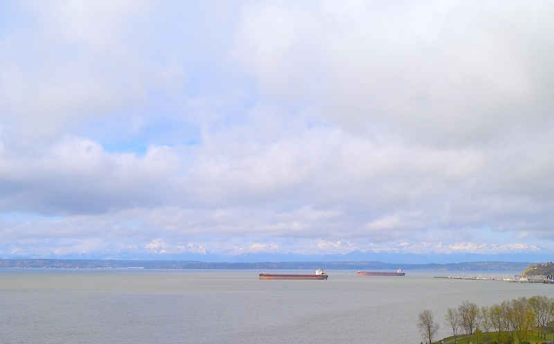 The rain cleaned the air and when the clouds broke it provided a reasonable view of the new snow on the Olympics.