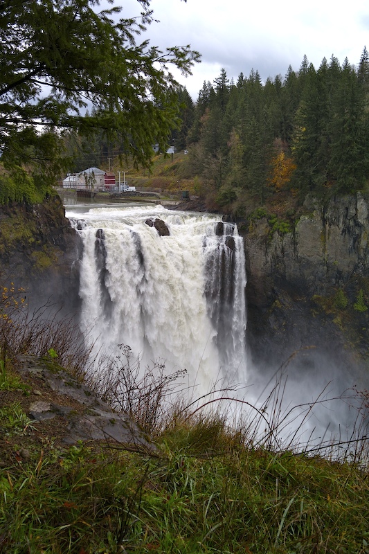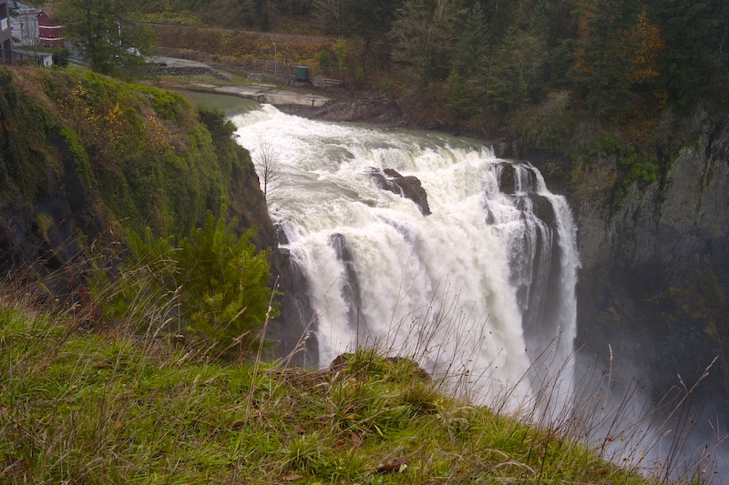 As a practical experiment, we took a drive to Snoqualmie Falls to check out the views. Here is the first view of the falls.