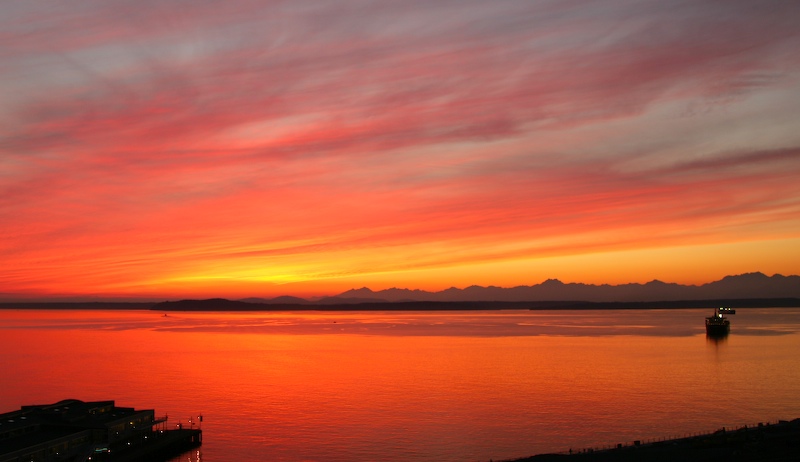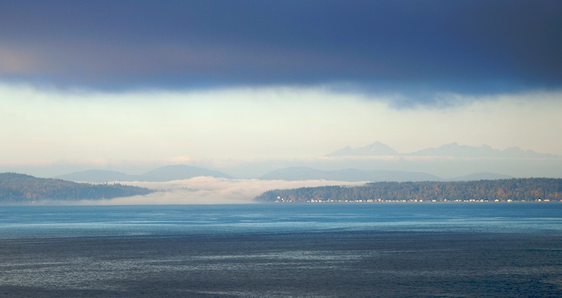 I got up in the morning and noticed a fog bank rolling over Bainbridge island and heading toward downtown Seattle. The Olympic mountains are in the background.