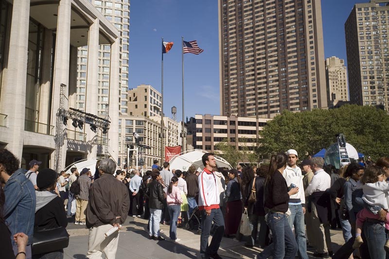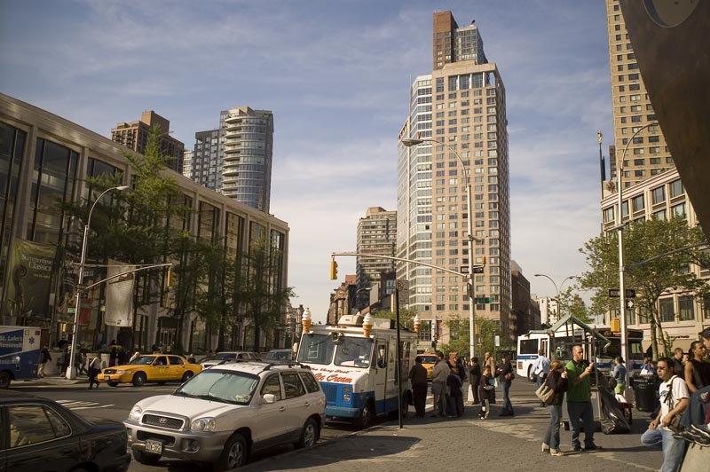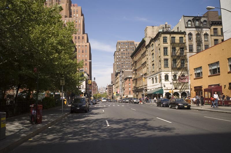 Now that spring is here several things return to Manhattan (besides the smiles of the residents). First is leaves on the trees and the second is the sidewalk cafe culture. This is looking north on West Broadway.