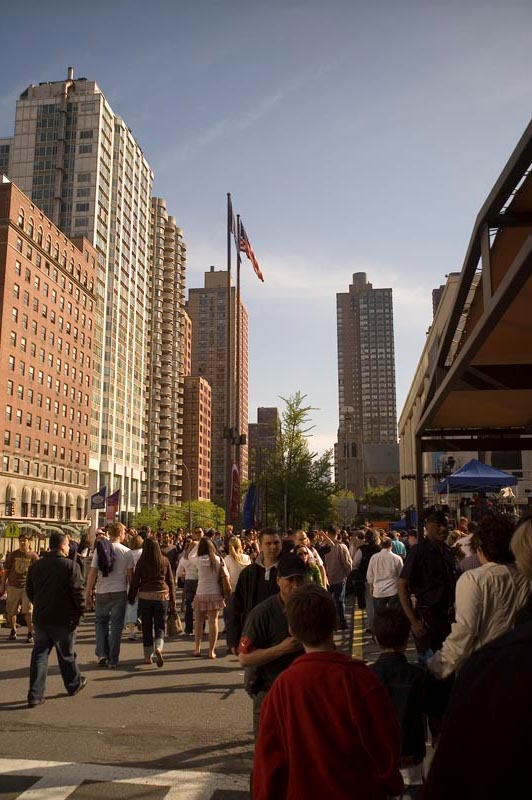 Kathleen and I were back in Manhattan for a few days and decided to see some of the local doin's. There was a fellow named David Blaine who had encased himself in a glass sphere filled with water and planned to say inside for a full week. He had no food and better yet, no place to go to the bathroom. His "show" was called "Drowing Alive" and the finale was where he was to hold his breath for 9 minutes. Can you say "hypoxia"? The photos below show some of the surroundings on the way to this freak show.