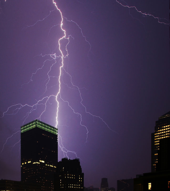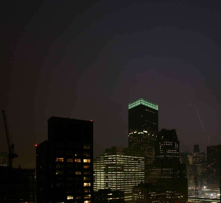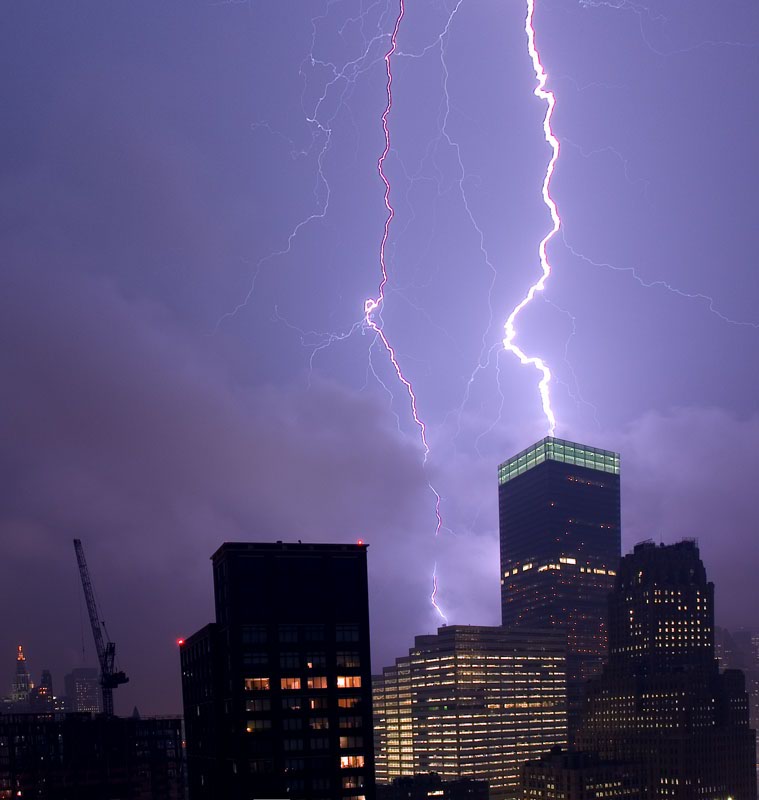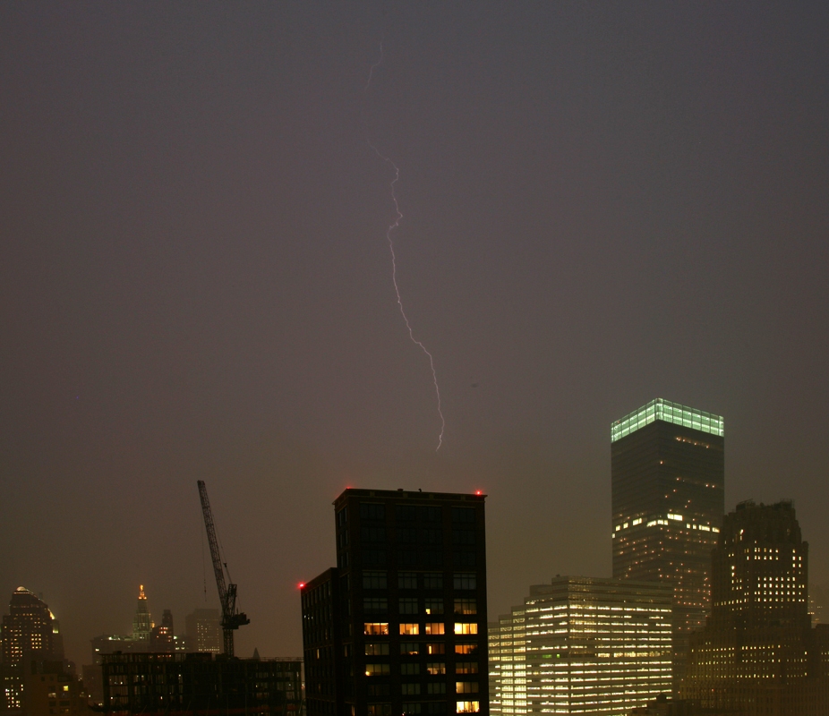 The first week back in Manhattan from Seattle we had a big thunderstorm. It was about 8pm and Rob Lensman and I were heading home from the office. As we were getting soaked from the rain, I told him that I was going back to the apartment and set up for some time exposure shots of the lightning. The shots below are what I got. The method is simple. Set the lens on manual focus and set it to "infinity focus". Next, set the exposure to "bulb" and attach the cable release. Then point and pray. I held the shutter open for about 8 seconds or until a strike occured. Repeat until done. I probably took a couple hundred frames, but only a few were open when the bolts were striking.
