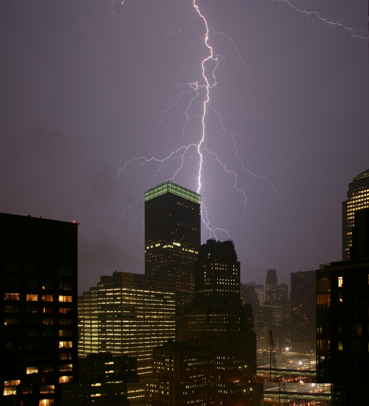 I found this photo in my Canon 20D after the first page was published. This was a big, big bolt that struck 7 WTC.