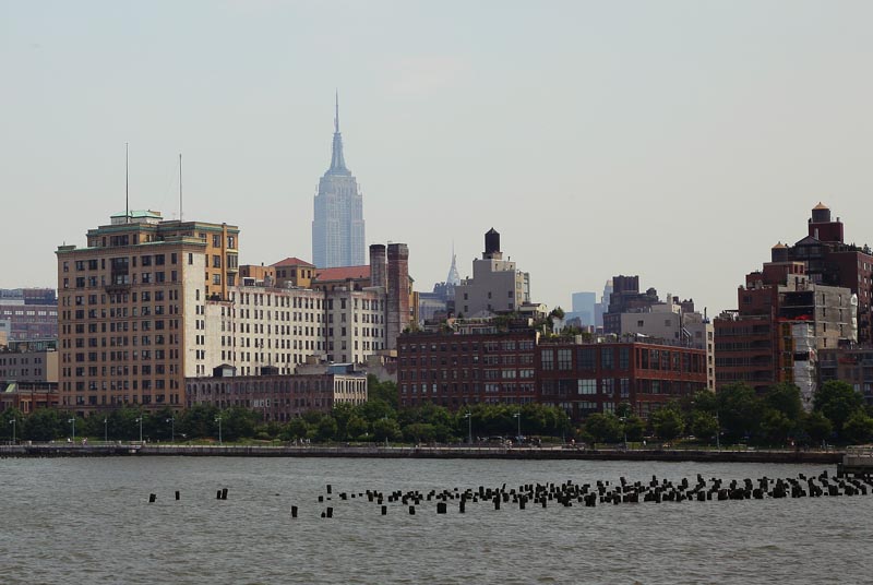 A lot of the older piers on the west side in the Hudson River have been removed. Some of the pilings remain and later served as the basis for park-piers. These pilings await refurbishment while the Empire State Building (ESB) looks on.