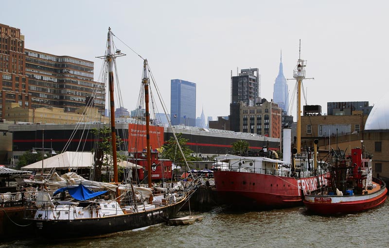 Here is the harbor at Chelsea Piers. These boats are part of an old maritime museum. The tallest one labeled "Frying Pan" was a light house ship and saw duty in the Carolinas warning sailors and captains of the shoals off of Cape Hattaras. We did go inside the ship, but it was depressing and smelly. Being a sailor was a tough life. Visible on the skyline is the ESB, just to the left of the "Frying Pan's" light mast.