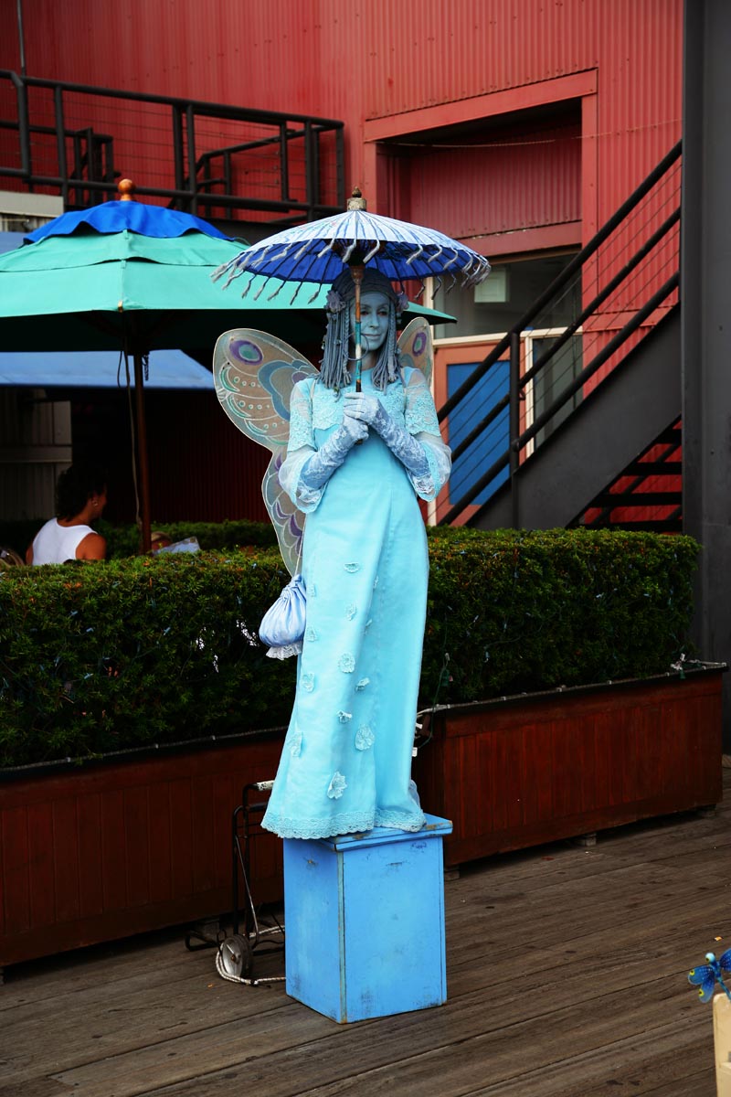 One of the street performers at South Street. I am not sure what her gig is, but it looks like a cross between Madame Butterfly and the Blue Man Group.