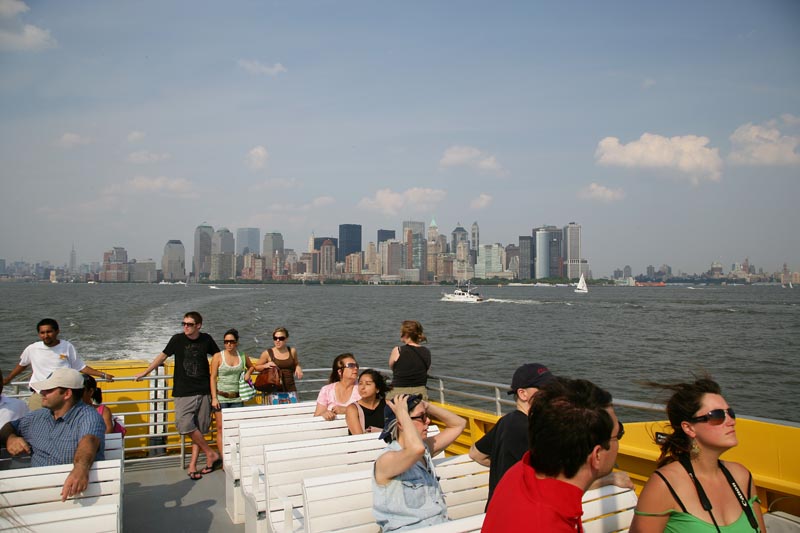 Downtown skyline as seen from the docking area at the Statue of Liberty.