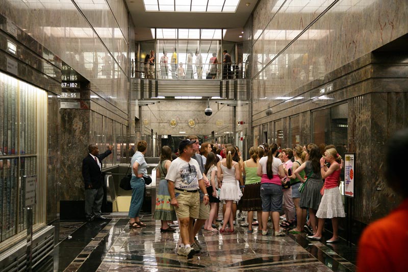 This is the exit area for the Empire State Building. Note the excellent granite tile and walls. The patterns in the granite were matched from tile to tile.