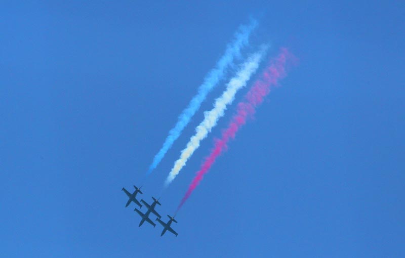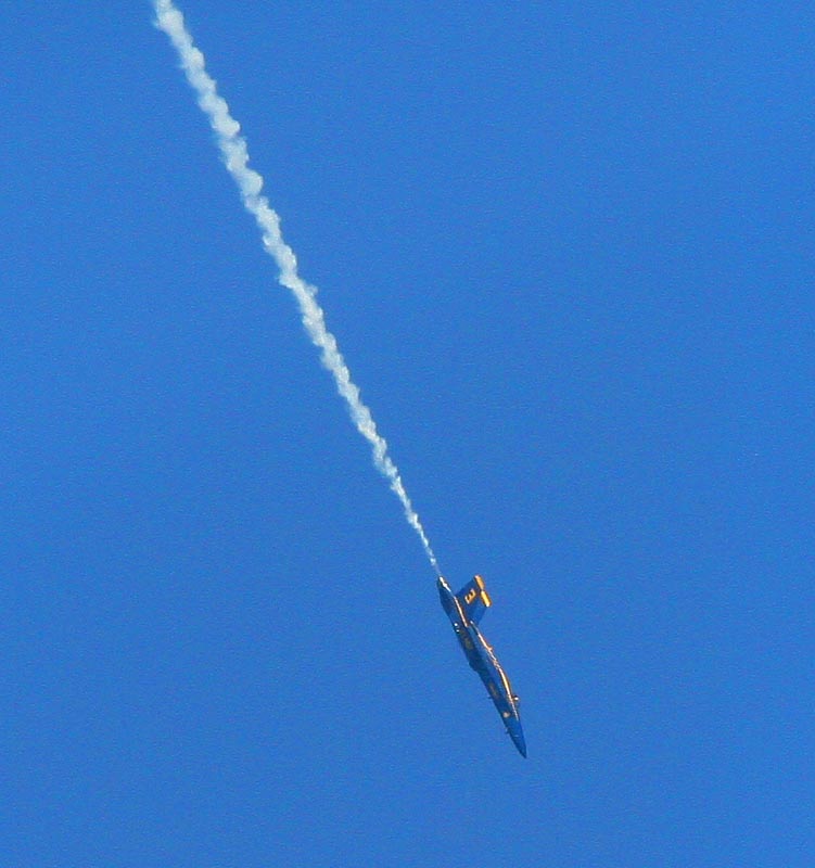 There were several fly-bys as part of the Navy's Blue Angels demonstration. This group is not the Angels since they are in a different type of aircraft.