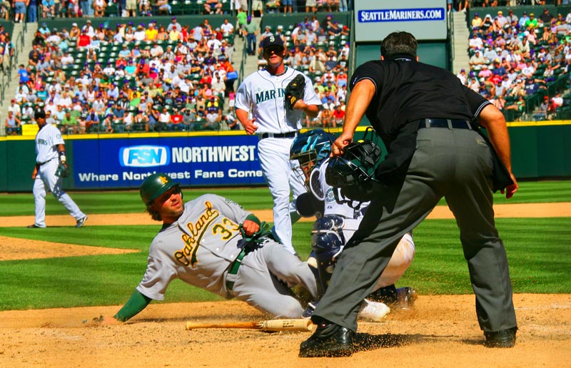 It was not until we got to the park did we fully understand what had transpired. With a little questioning, we determined that these season's tickets were a minimum of $35K/seat per year and to get them you had to pay for multiple seats and multiple years. These were clearly the best seats in the house, the only drawback being that we were sitting behind netting to prevent errant baseballs from attacking our faces. Later in the day, the presence of the netting would be greatly appriciated as there were many stray balls that would have spoiled what was otherwise a perfect game. While the Mariners lost to Oakland 5-2, it was a great time.