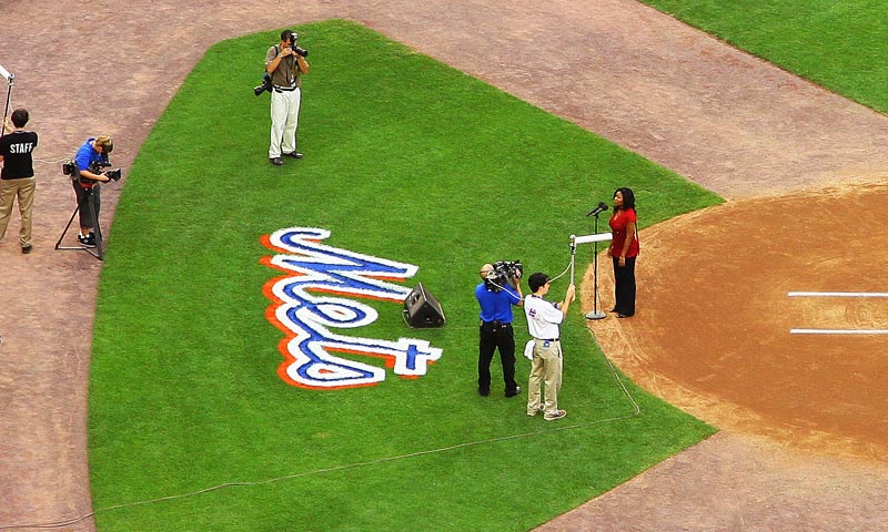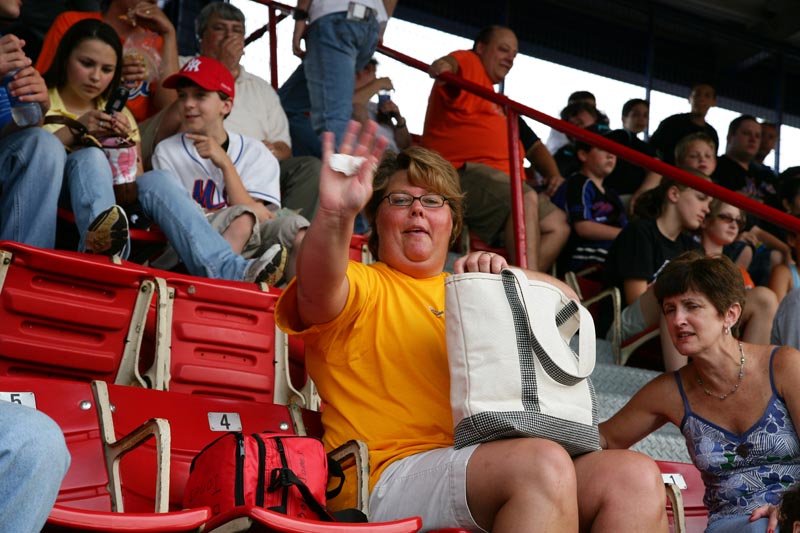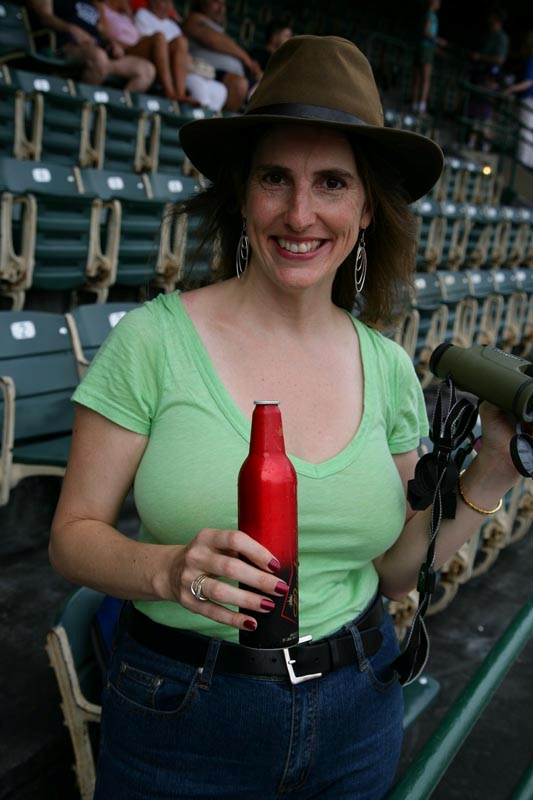 All Baseball games in America start with the national anthem. This gal had a great voice, but sadly I did not get her name. Here, she sings to the crowd.