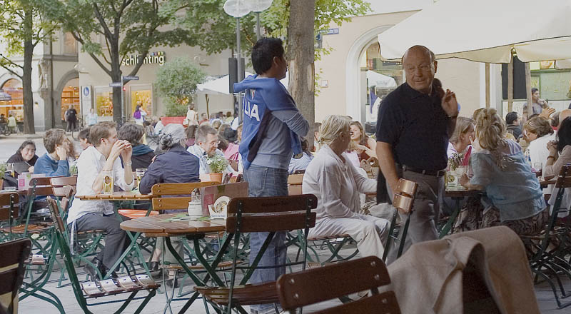We had some tasty classic Bavarian food at an outdoor cafe. Here, the folks are digging the soccer on the big screen TV.
