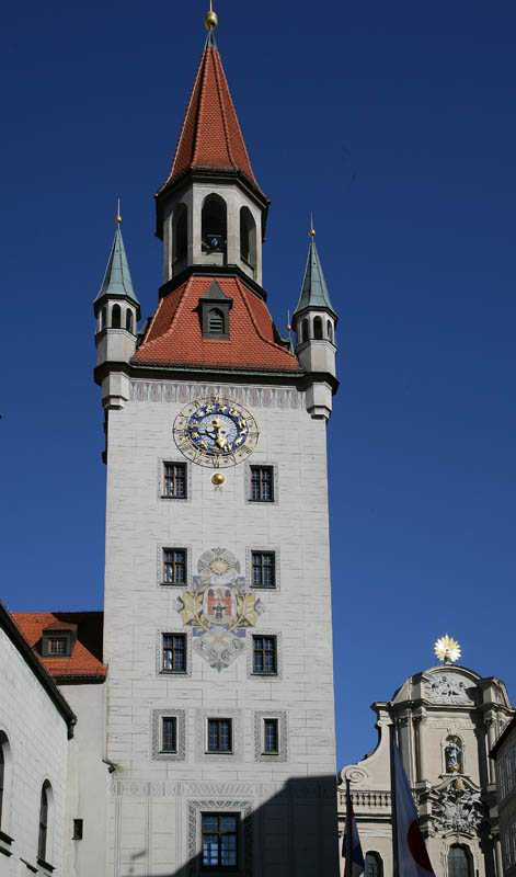 When we got to Munich, of course we were pretty jet lagged. But, after a brief nap, there was still plenty of sunlight. So, we decided to go to the town center and see the sights. The center-of-the-center is the area called the Marienplatz. The shots below are what we saw.