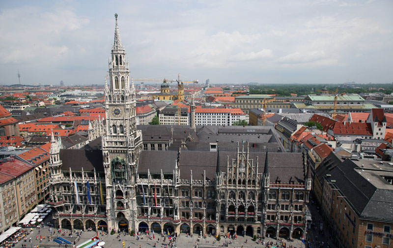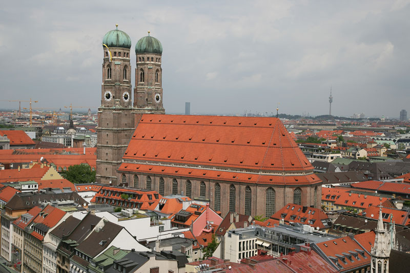 The most famous cathedral in Munich. Note the tall tower on the right on the skyline.