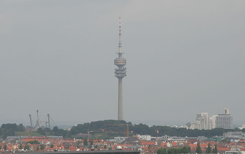 A television tower. Note the structures on the left. This is the Olympic stadium. Buildings on the right are the BMW headquarters.