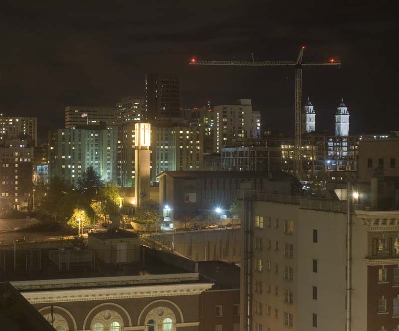 A night time view of a portion of Seattle from the hotel window. This was an 8 second exposure at f5.6 ISO 200, hand braced on the window sill with my Epson RD-1 rangefinder camera.