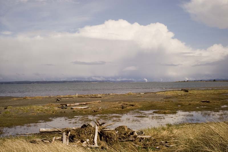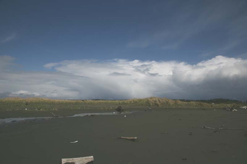 South of Ocean City, WA in the state park. Note the plumes of smoke/steam on the eastern horizon. A photo of the source of that emission is at the end of this page.