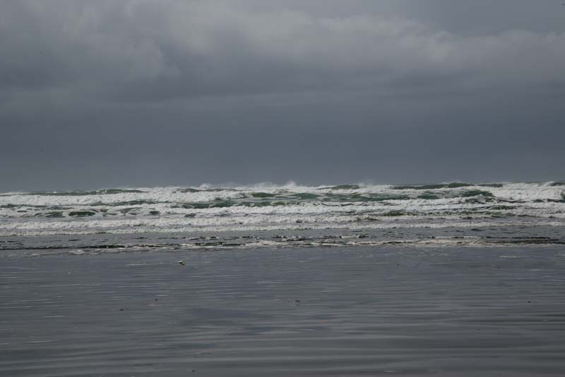 It only took one day to get bored, so we decided to take the rental car and head to the beach. From Seattle, the beach is about 150 miles away, south through Olympia, then west across the Olympic penninsula to Aberdeen, WA and then to Ocean City. We were pelted by heavy rains and strong winds most of the trip. But, when we got to Ocean City, we hit a brief window of clear.