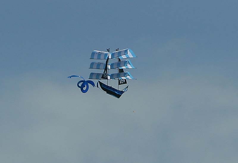 A very cool kit spotted at the beach. This is a ship with a twirling rudder.