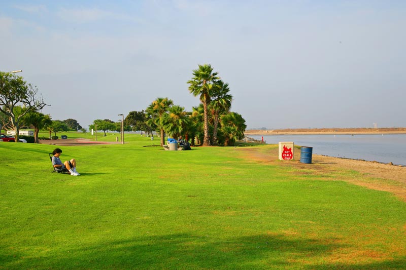 Mission Bay park has acres of lawns, all nicely mowed. This fellow came down to study.
