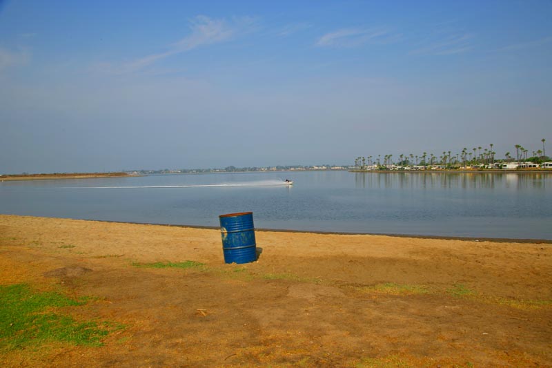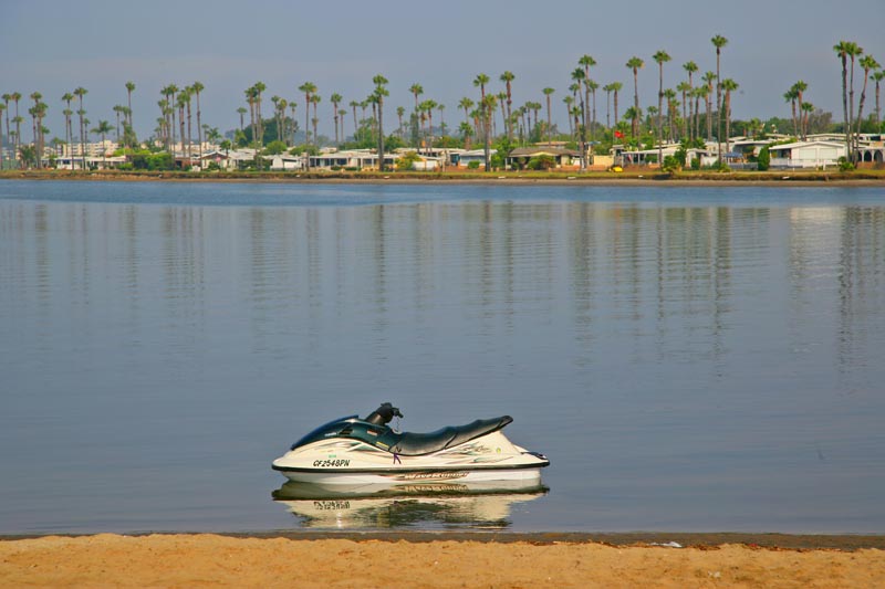 Since we were going to be in San Diego for only 2 days in preparation for our drive north, Kathleen suggested that we fire up the jet ski and take it to Mission Bay. We did just that and when we got to the bay it was clear, warm, no wind and hot. Perhaps the best day I have ever seen. We got the ski wet and Kathleen headed off. The bay was oddly empty. In fact, it was totally deserted. My curiousity aroused, I quickly found the reason. The bay was closed due to a spill from a month before. Oddly, the spill happened before the 4th of July. But, it seems that the city knew about it but did not wantto risk the reputation of the city with the toursists, so they left it open over the 4th despite the fact that they were aware of the contamination. After the holiday was over, they decided that they should close it to activity. Since we had no intention of getting in the water, we decided to drive on anyway. Hell, the ski was already wet and Kathleen was on her second lap before we discovered the issue anyway. No waves, no wakes, only about 3 boats on the whole bay. It took about an hour before the lifeguards chased us away, but in the interim, we burned through 1/2 tank of gas and many 60 mph laps of the bay. Suspect behavior on the part of the City notwithstanding, Mission Bay is indeed the crown jewel in San Diego. Too bad that the corrupt San Diego City Council puts image above the public good.