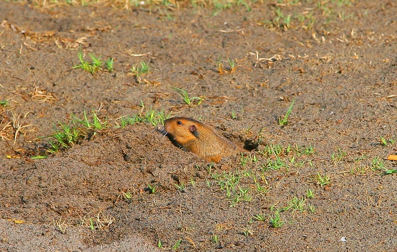 I was sitting at the park bench and drinking a water when this little vermin raised his head. I think that the presence of the grass provides them food as I think they eat the roots. Here he is extending his tunnel system, pushing spoil to the surface.