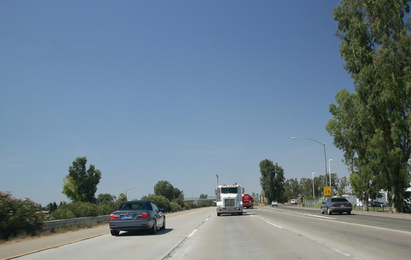 Anything odd about this photo? Sometimes, when you are on a long trip, your mind starts to wonder. After slugging it out in LA for 3 hours, we broke free and hit highway 99 which goes through the Central Valley. Since the traffic was much less, I let my mind wonder for awhile and "logged in" when I was confronted with the scene above. After I cleaned out my shorts, I realized that the truck was being towed, not driving down the center lane AT ME. The blue car on the left is Kathleen's 330 convertable.