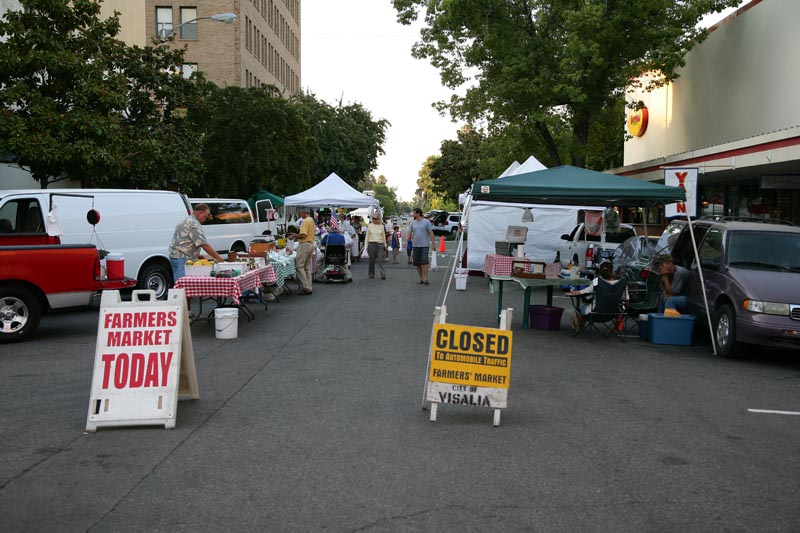 Main Street. Visalia, California at 7pm. This is definitely NOT Manhattan. Note the foothills of the Sierra Nevada in the background. Also, this is pickup and SUV heaven from the counts of the cars in the photo.
