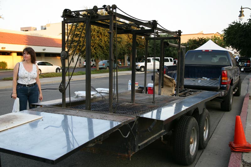 This BBQ rig at the Farmer's Market was a f**king masterpiece of engineering . Note the chain drive, worm gearing and big firebox.