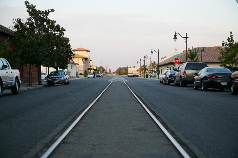 The old Southern Pacific main line tracks that run through the center of Visalia in front of the Depot.