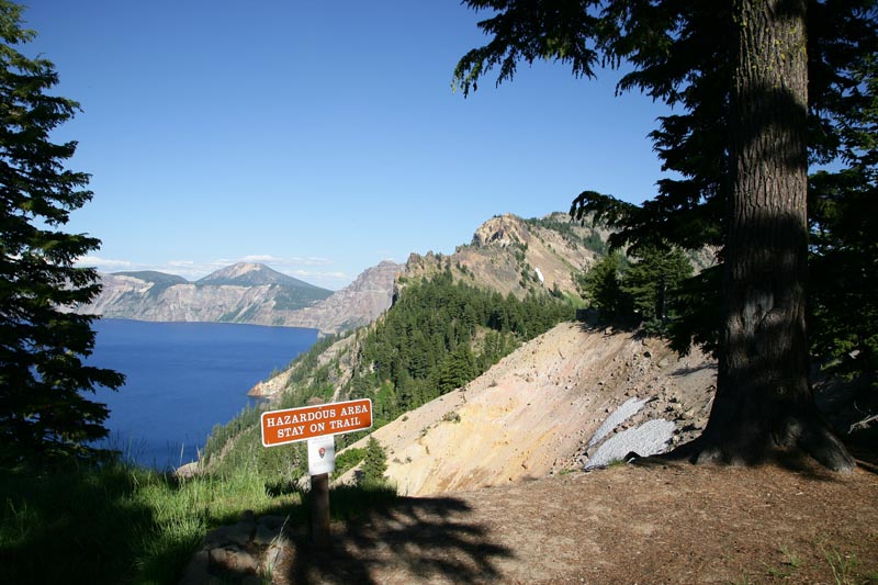 The sides of the crater walls are steep and unstable. One step over the edge and it is a one-way, no return trip to the bottom. There were signs all over to that effect and I do not think that they were scare tactics, but rather the result of a number of folks going over the edge.