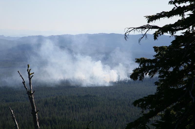 As we were on our way out of the park, we passed this fire in progress. The claim was that this was a "natural, controlled burn". Seems that the National Park Service (NPS) learned a lesson about fires after the big Yellowstone fire years ago. Man's fire supression efforts are not as useful as once believed. Fire plays a role in the natural ecology of the forest, and sometimes it is better to just let it burn. The resulting areas support grasses and meadows that would not be there without the fire.