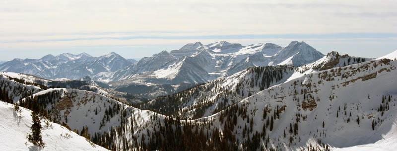 View looking south toward Mt. Timpanogos, one of the higher peaks in the Wasatch. Note the bedding in the rock near the peak.