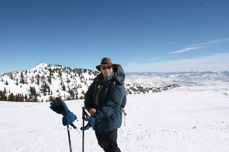 Bill finishes taking a photo and gets ready to roll. The Heber valley is in the background.