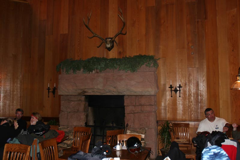 Here is a shot of one of the many fire places in the mid-mountain lodge. Very nice and the food, while pricey, is outstanding and well worth the cost. Particularly after eating $10 burgers at Mammoth Mountain.