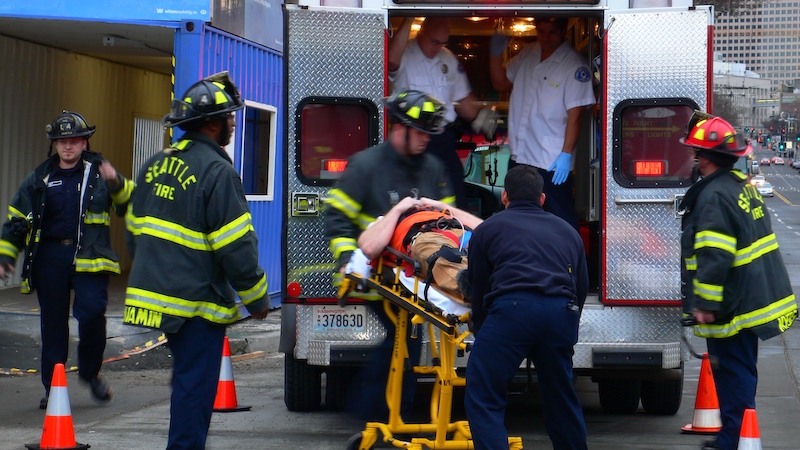 The litter deployment is complete, there are already other EMS personnel on the floor.