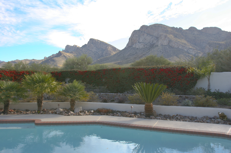 A view of the pool and the Pusch Ridge of the Santa Catalina Mountains from the backyard.