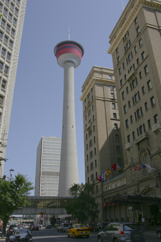 I got this shot of the Calgary Tower right across the street from the Fairmont. In fact, it is visible in the lower right of the photo. This tower is big and has a restaurant on the top. The following day, we would attempt to visit and eat in the restaurant.