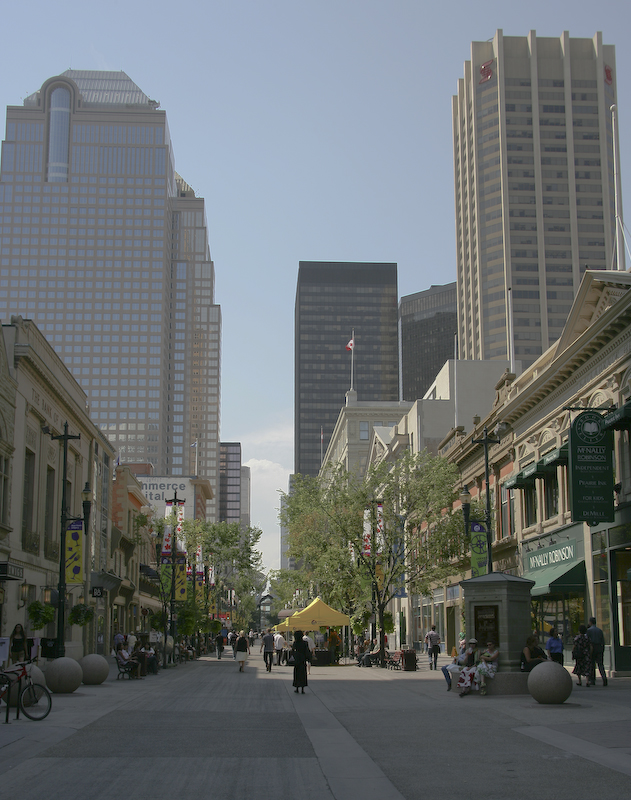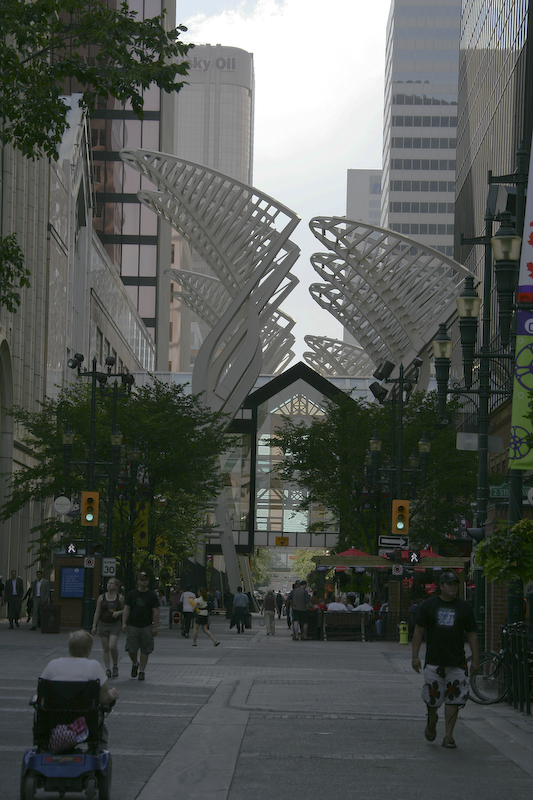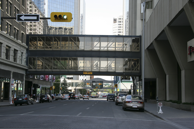 Calgary, like Minneapolis, has a network of walkways interconnecting buildings to allow pedestrians to commute on foot during times of bad weather (which I am guessing is most of the winter).