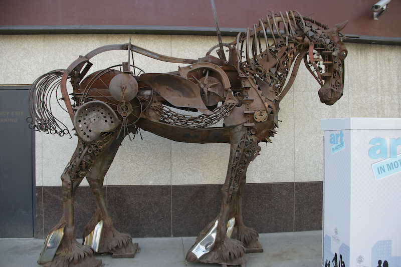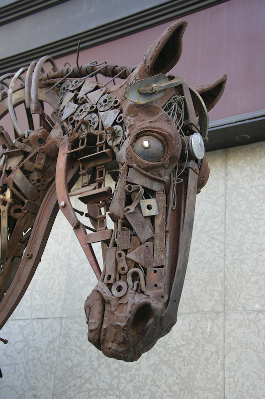 A deviation from the cow theme, this one blew me away. It is constructed of old farm implements and parts of tractors.