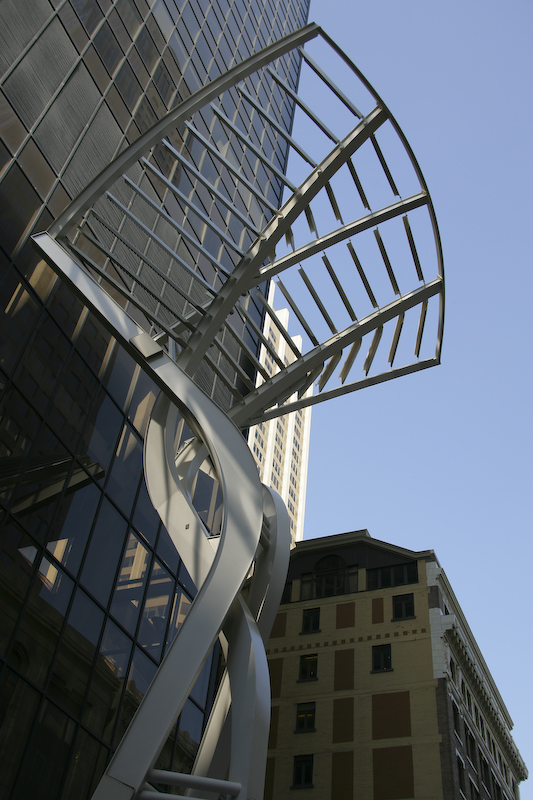 A close up of the steel sculptures at the end of the street. These were flanked by big, modern high-rise buildings.