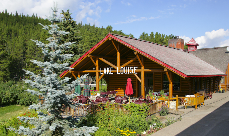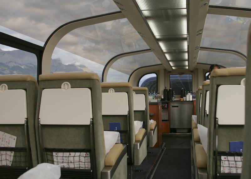 We stopped at a ski town near Banff to pick up additional cabin attendants. These stores were visible from the train with an incredible backdrop of mountains.