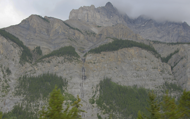 Just before we hit Banff, we came upon this waterfall cascading down the sheer face of this mountain.