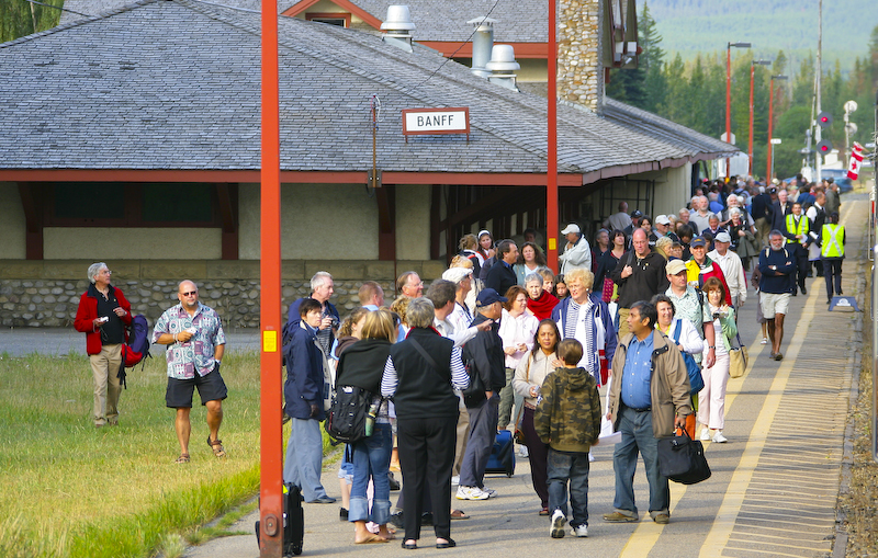 Banff station. We took on a substantial number of passengers. These folks are ready to board the train.