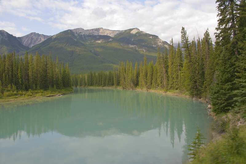 The lakes in the Banff area were a milky blue color. The color comes from dissolved minerals and salts in the water. Later in this photo set, we will see that the water turns from blue to white as the suspension gets more concentrated.