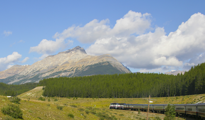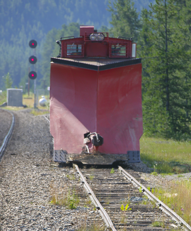 The Canadian Rockies get heavy snows in the winter. Here is a snow plow that was stored aside the main track as we past.