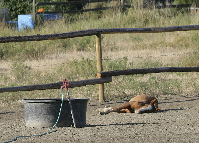 We passed a small ranch next to the tracks. Here a new born colt catches 40 winks. He did not move as we passed by.